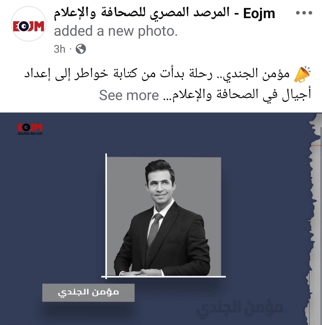 نشر المرصد المصري للصحافة والإعلام، تقريرًا مطولًا استعرض فيه مسيرة الكاتب الصحفي والإعلامي المصري الدكتور مؤمن عصام الجندي، مشيرًا إلى أنها تجربة مهنية وإنسانية تمتد...