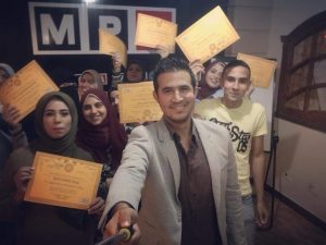 وتابع قائلًا: “لتتحول حياتي فجأة إلى درب لم أكن أتخيل أنني سأسير فيه وهو التدريب الصحفي والإعلامي، ففكرة نقل العلم والخبرات إلى الشباب تستهويني بشدة وتجعلني منطلقًا فرحًا كالطفل الصغير، وهي التي دفعتي للحصول على الدكتوراه في الإعلام برسالة تحت عنوان دور الإعلام في بناء الفرد والمجتمعات في ضوء التنمية المستدامة”.